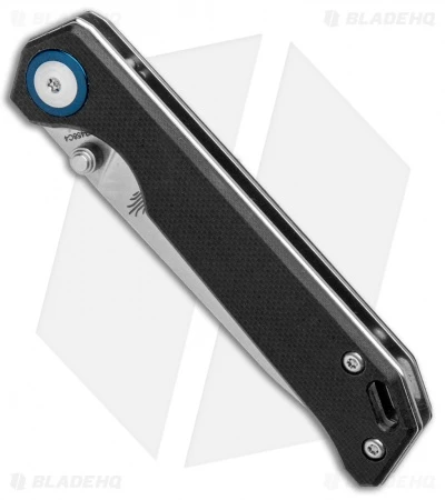 - Black G-10 handle with satin finished hardware.