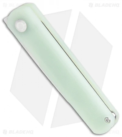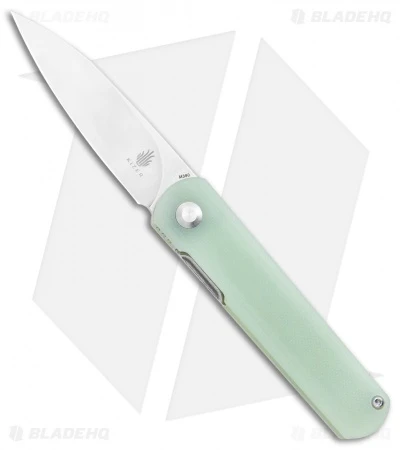 This Blade HQ Exclusive Kizer Feist features an exclusive natural jade G-10 handle.