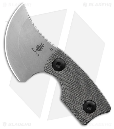 The Kizer Butcher is a fixed blade knife that really makes a statement. Its most obvious feature is its ridiculously over-the-top cleaver style blade. At first glance, it looks like something a goblin would wave at your while demanding a bridge toll, it’s actually a surprisingly ergonomic and practical knife. It has a micarta handle with dual finger choils, making it secure even during hard use.