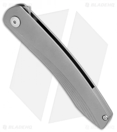Dropping into the knife world is the Kizer Zen. The Zen is a slender, lightweight flipper knife. The handle is bead blasted titanium with a milled swoosh texture on either side. The matching titanium pocket clip is positioned for tip-up carry. The blade is made from CPM-S35VN in a trailing point style with a stonewash finish.