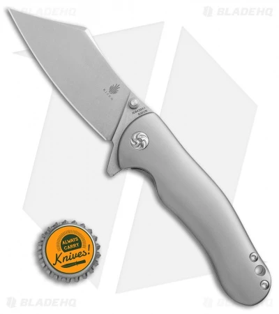 The Kizer Zugang offers titanium construction and a unique collectible design. This model is equipped with a smooth, ergonomic titanium handle and a wharncliffe style blade made from CPM-S35VN stainless steel. The handle features a custom pivot and a matte blasted finish. It comes with a titanium pocket clip for tip-up carry. The blade can be quickly opened with a flipper or thumb stud and locks in place with a solid frame lock. Experience the affordable quality Kizer Knives are known for.